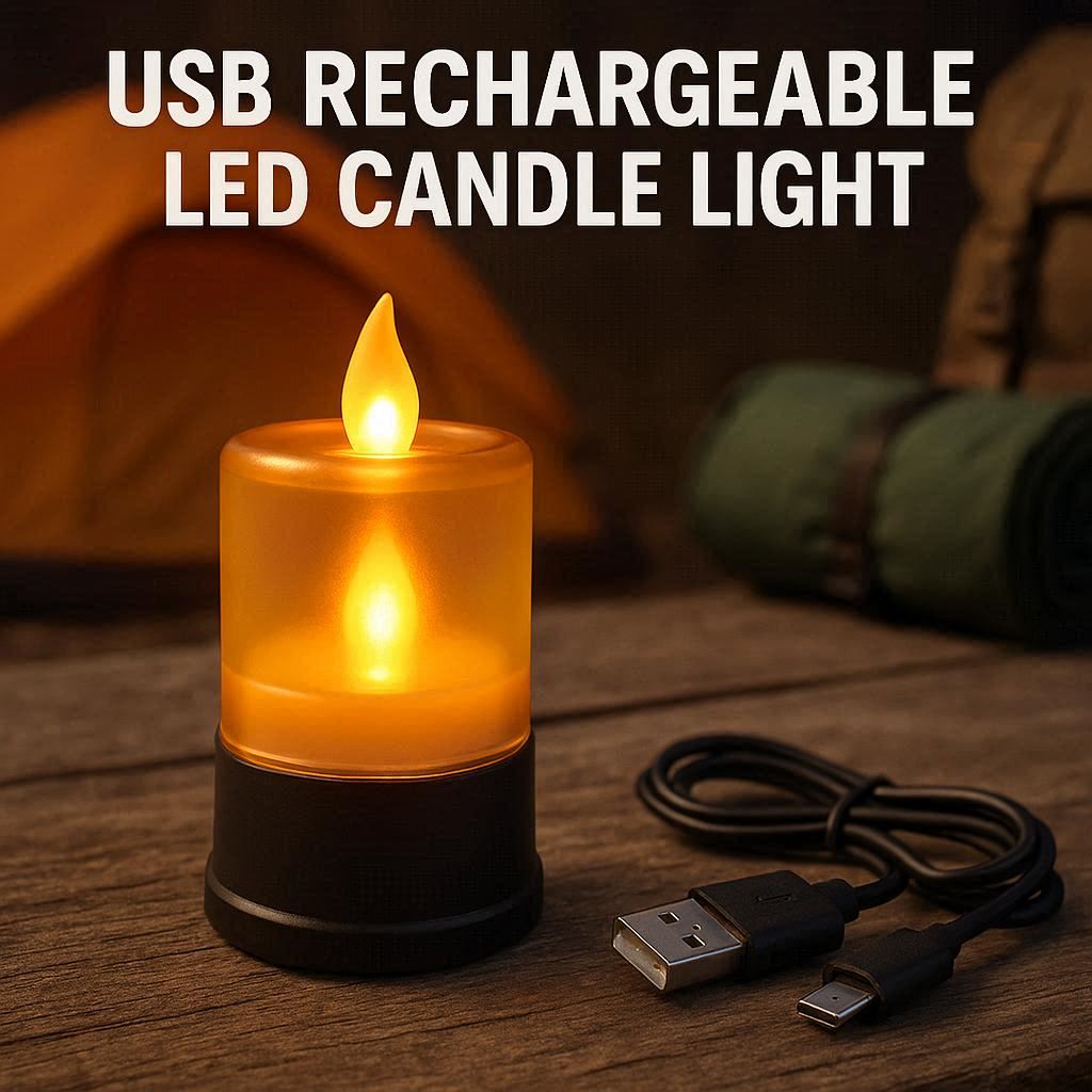 Compact, battery-operated candle with 8-hour runtime, ideal for outdoor adventures or emergency lighting.